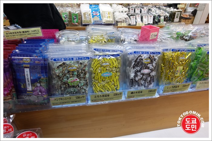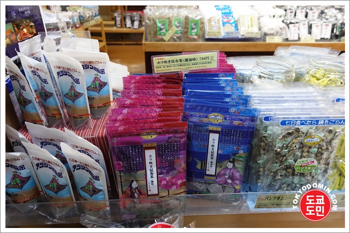 다시마(콘부)로 만든 사탕? 캬라멜 비스무리한 것도 판매하고 있어요.