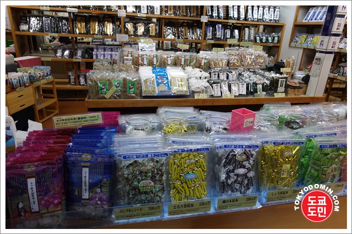 다시마(콘부)로 만든 사탕? 캬라멜 비스무리한 것도 판매하고 있어요.