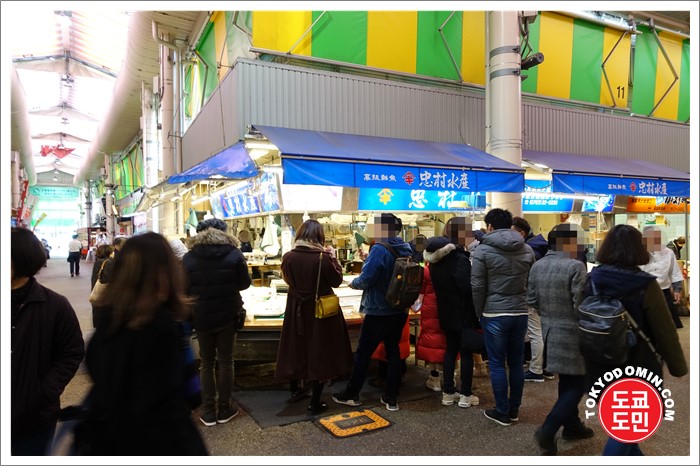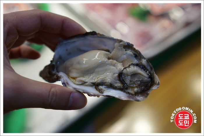 이번에는 티비에도 많이 소개된 '오미초시장(近江町市場)'내에 있는 '충촌수산(忠村水産)'에서 굴과 새우를 먹어보았습니다.