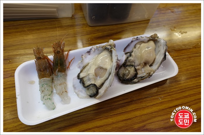 이번에는 티비에도 많이 소개된 '오미초시장(近江町市場)'내에 있는 '충촌수산(忠村水産)'에서 굴과 새우를 먹어보았습니다.