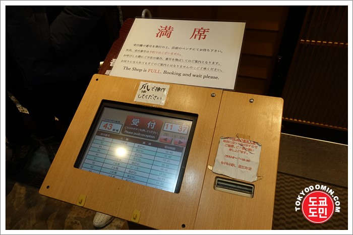 가게 입구 앞에는 순번표를 뽑는 기계가 있습니다.