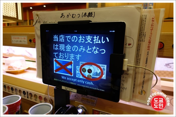 먹고 싶은 초밥(스시)를 터치 메뉴판으로 주문해서 먹는 스타일입니다.