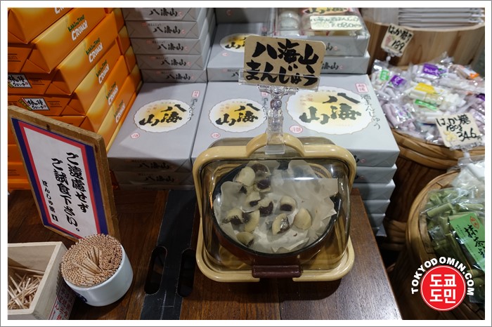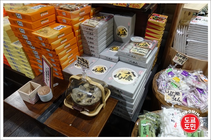 핫카이산으로 유명한 지역이다보니 핫카이산 브랜드를 이용하여 과자, 떡, 케잌등 정말 다양한 관광상품을 판매하고 있는거 같아요.
