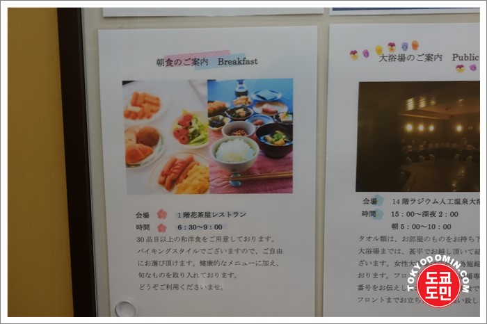 평범한 비지니스 호텔이고, 온천성분이 물에 녹여서 제공하는 인공온천을 무료로 이용가능합니다.