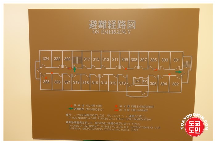 체크인을 마치고 엘리베이터를 탔더니 엘리베이터안에 여러 정보가 있었어요.