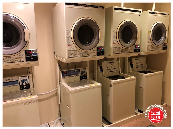 이 곳 휴게실 한쪽에는 동전 빨래방이 있습니다.