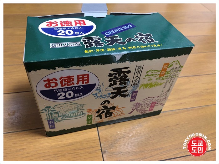 이 한 상자에는 총 5종류의 온천 입욕제가 4개씩 총 20포가 들어있습니다.