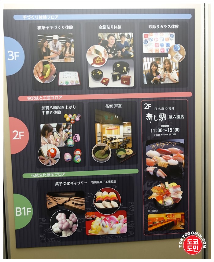 '이시카와현 관광 물산관'은 지하1층부터 3층으로 구성되어 있습니다.