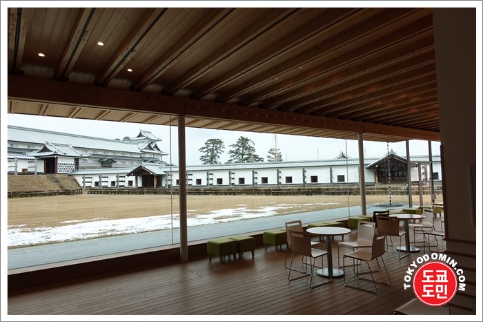통유리로 가나자와성을 볼 수 있게 되어 있고,