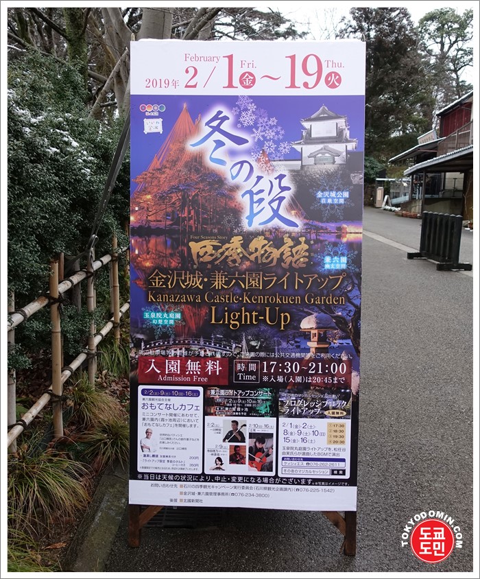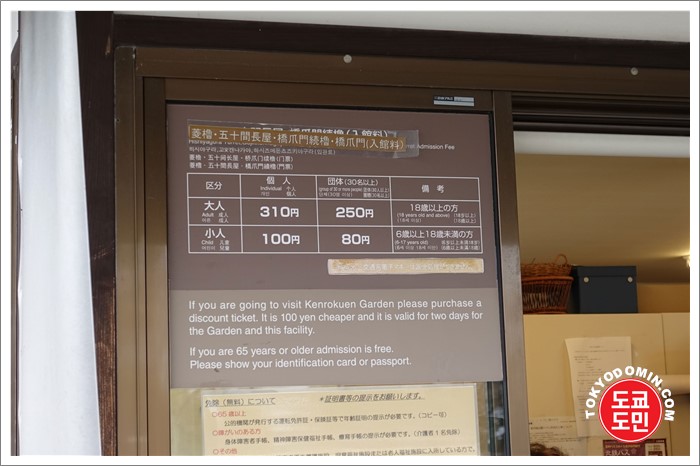 가나자와성과 겐로쿠엔 2군데 이용할 수 있는 입장권은 500엔에 판매하고 있어요.