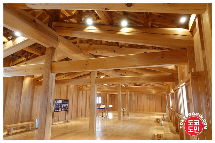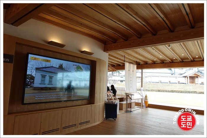 통유리로 가나자와성을 볼 수 있게 되어 있고,