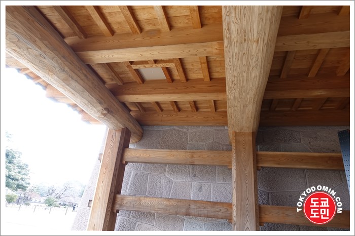 못을 하나도 사용하지 않은 나무만으로 연결해서 만든 목조 성문이랍니다.