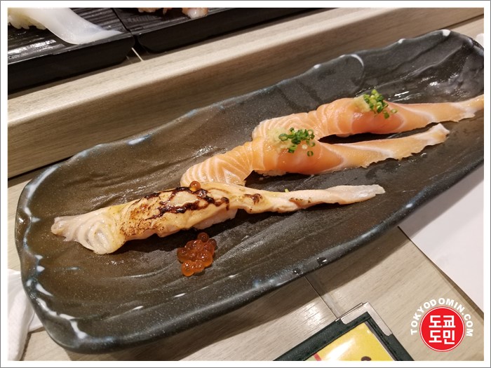 이건 사몬(연어)와 연어를 살짝 구운 사몬 아부리입니다.
