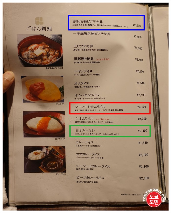 이건 메뉴판에 파란색으로 표시한 '비프데키동(赤坂名物ビフテキ丼)'입니다.