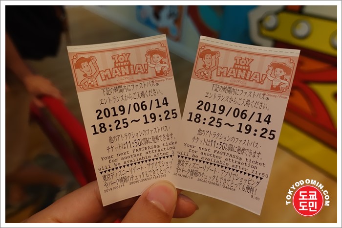 패스트패스 시간인 18시 25분에 토이스토리 매니아를 타러 왔습니다.