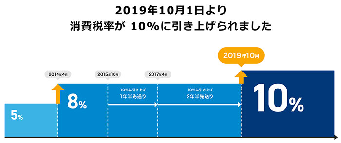 연기되고 또 다시 연기되어 2019년 10월 1일부터 소비세가 10%로 변경되었습니다.