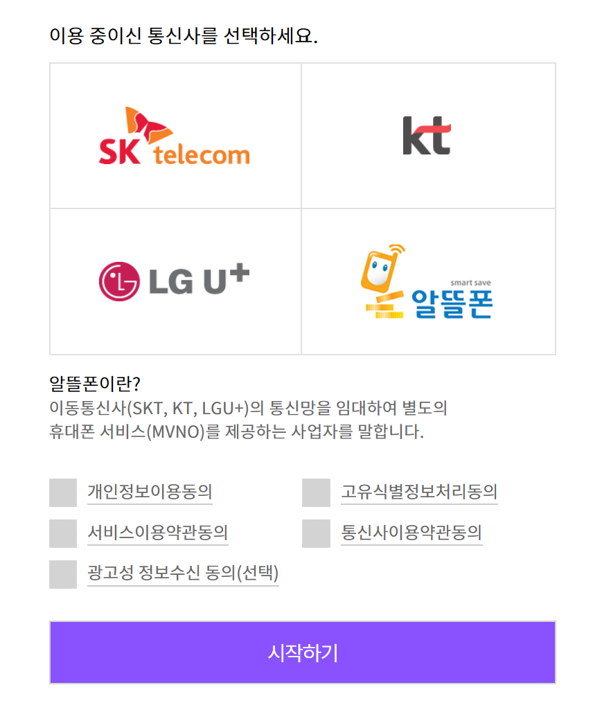 한국의 사이트의 인증방식은 대부분이 핸드폰인증 방식입니다.