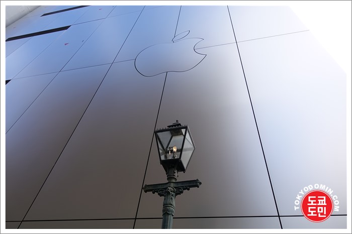 애플 로고를 찍은게 아니라 그 앞에 세워져있는 조명을 찍은겁니다.
