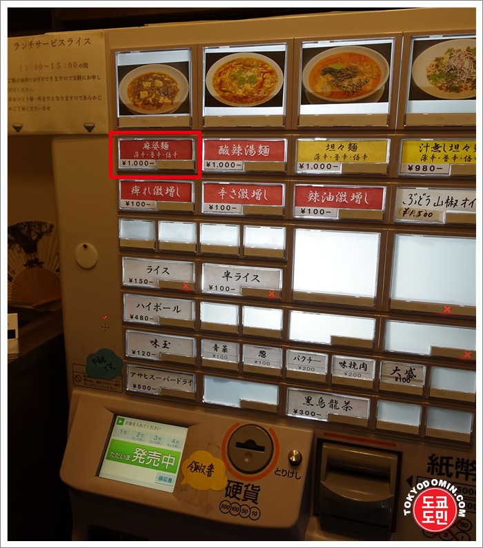 가게안으로 들어가면 바로 식권을 구입합니다.