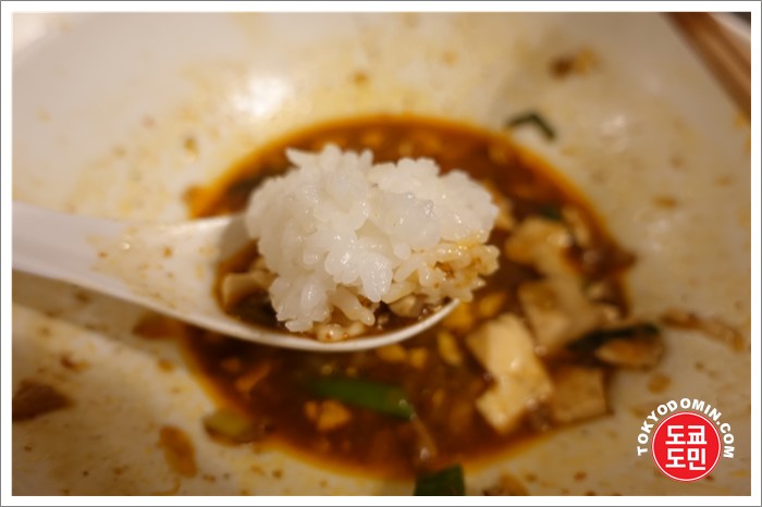 라면을 다 먹고 난후에 무료로 받은 공기밥을 남은 마파두부랑 같이 먹었어요.