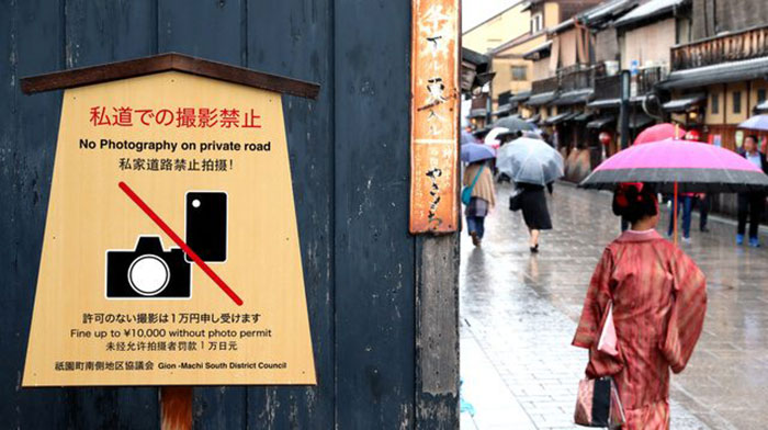 게이샤 혹은 마이코상을 무단으로 촬영하는 것도 초상권위반으로 잡혀갈 수도 있습니다.