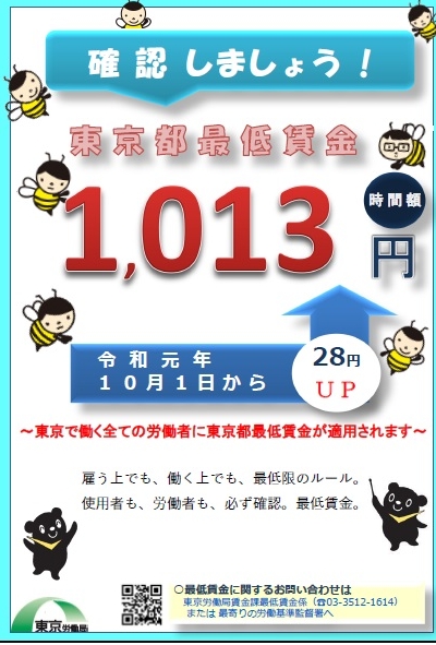 도쿄의 최저 알바비는 시급 1013엔!