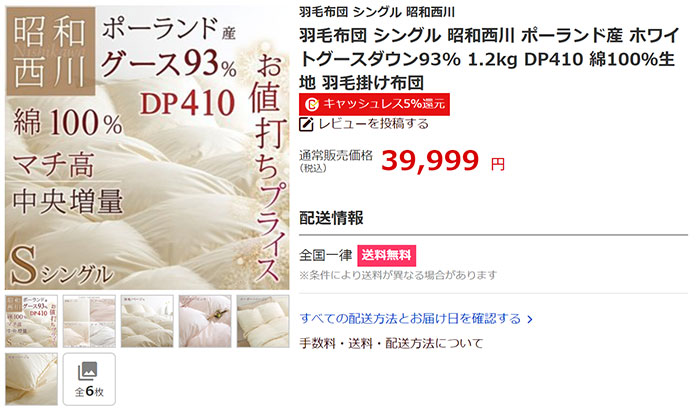 "니시카와(西川)"에서 이번에 거위털(구스다운) 이불을 구입했는데 완전 반값에 반값으로 구입을 했습니다.