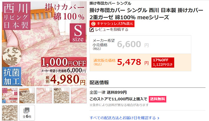 그리고 이불커버는 약 5500엔짜리에서 약 3000엔짜리로 변경되었네요.