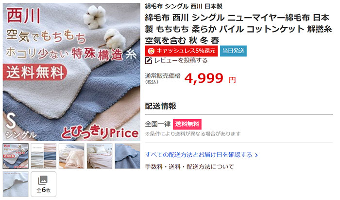 게다가 침구류로써는 일본 대표 유명 브랜드 "니시카와(西川)"!