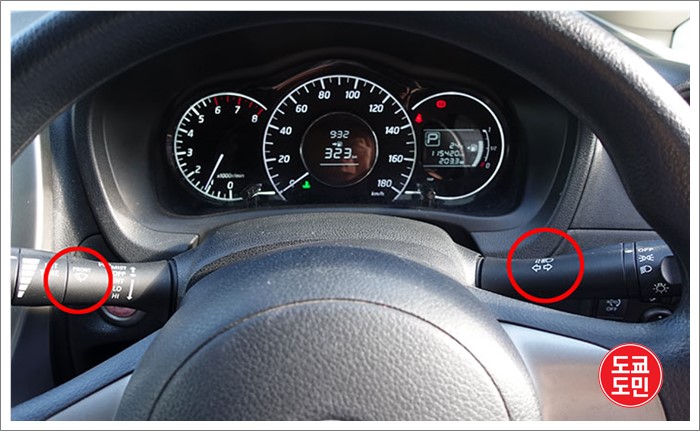 깜빡이(윙커)와 와이퍼의 위치가 한국 자동차와 반대입니다.