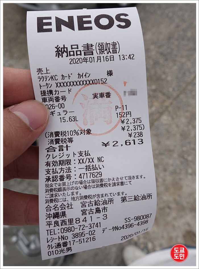 이게 지정된 주유소에서 만땅으로 주유한 다음의 영수증입니다.