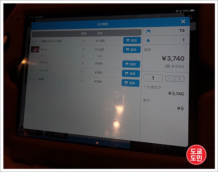 이렇게 혼자서 먹고 가격은 3740엔 나왔습니다.