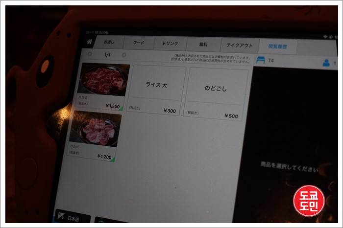 주문한 이력은 타블렛으로도 확인할 수 있습니다.
