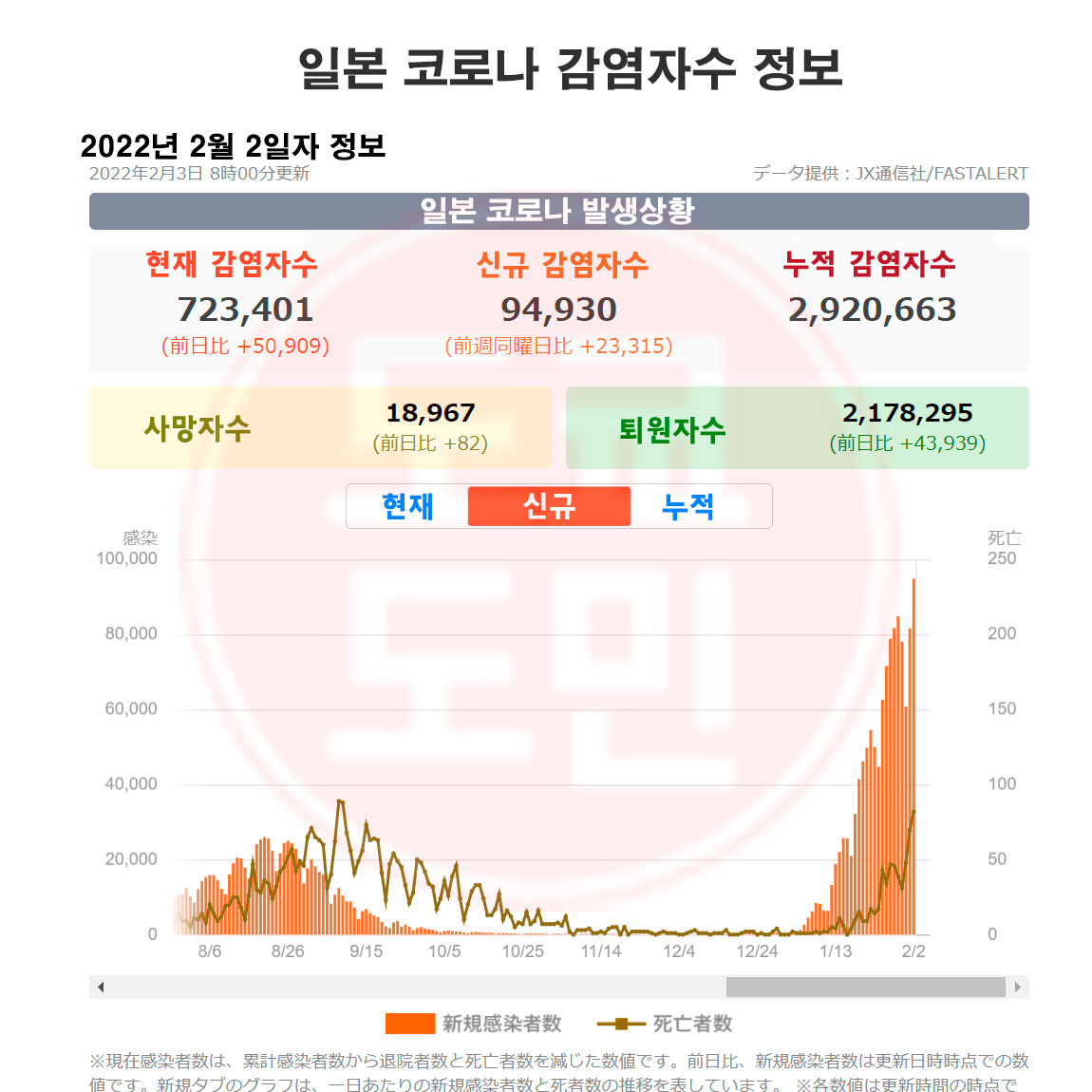 일본 전국적으로는 신규 확진자수가 94,930명 (2022년 2월 2일 기준).