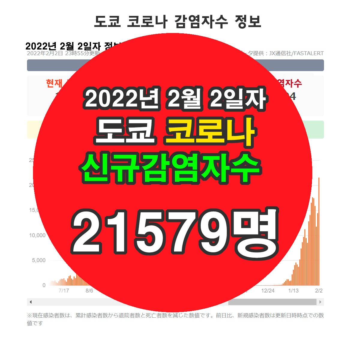 2022년 2월 2일자 도쿄 코로나 신규 확진자수 정보입니다.