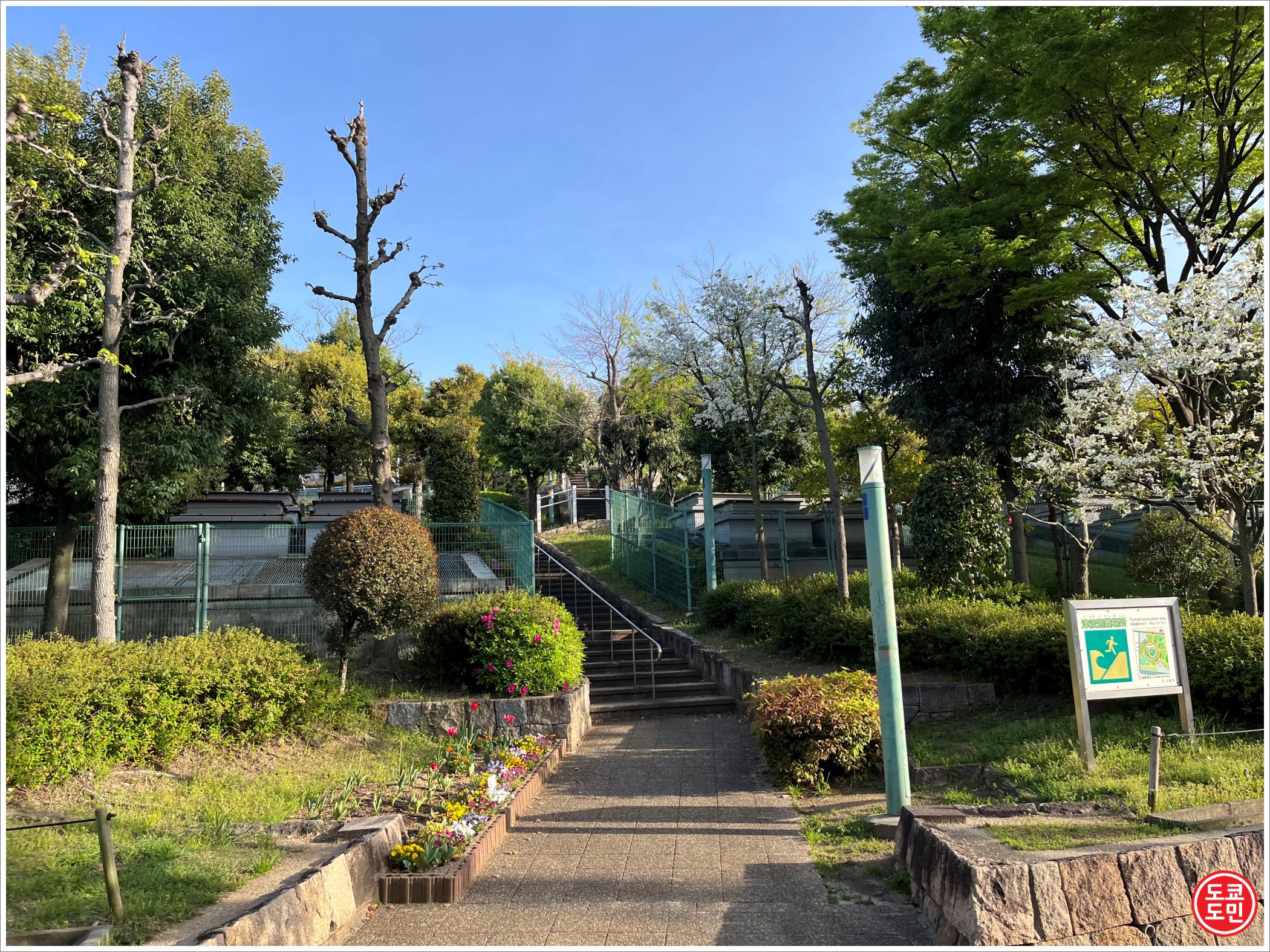 공원에는 이렇게 계단도 있는 이 계단 밑이 "마루젠 인덱스 아리나 오사카(丸善インテックアリーナ大阪)" 입니다.
