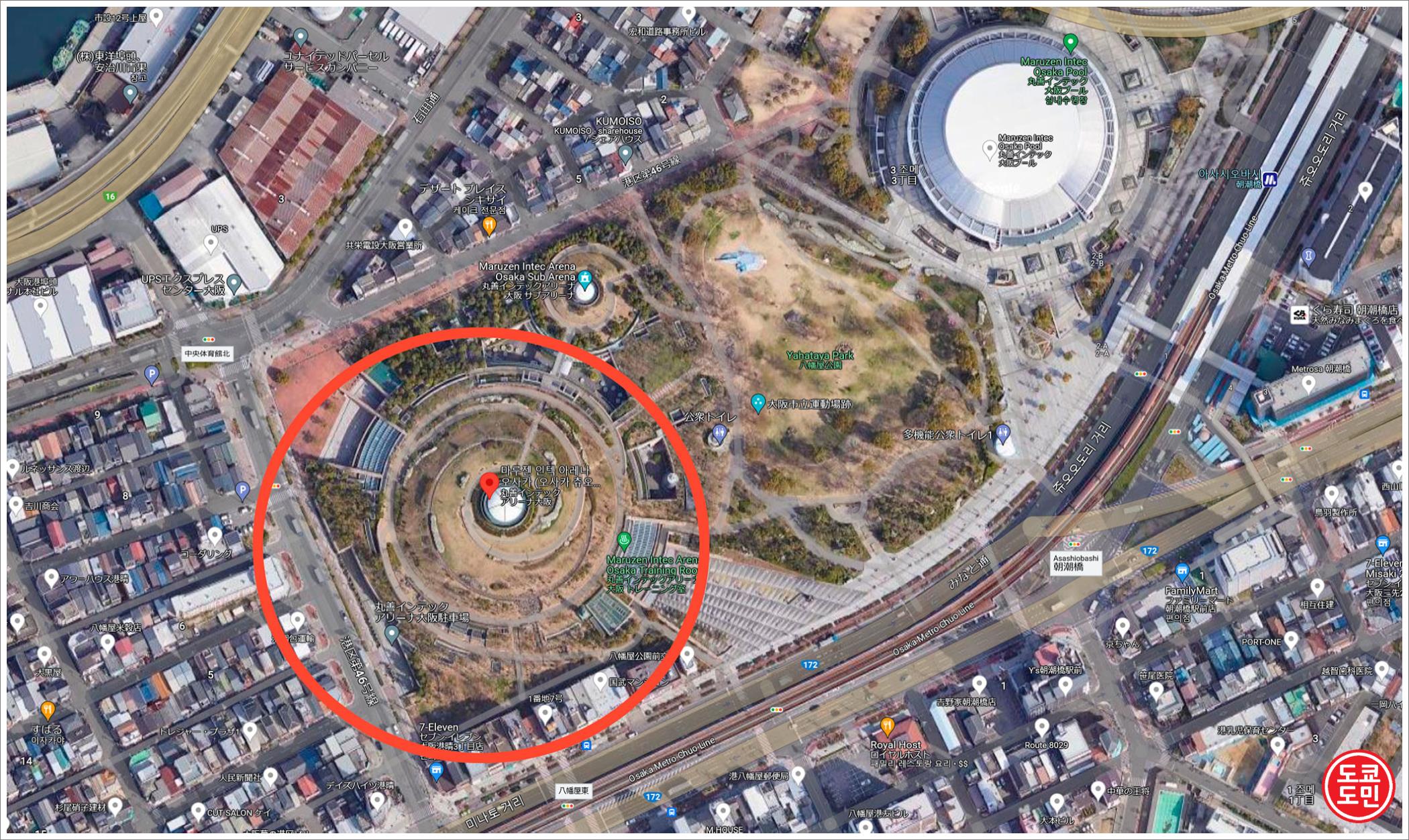저 곳 밑에 "마루젠 인덱스 아리나 오사카(丸善インテックアリーナ大阪)" 가 있습니다.