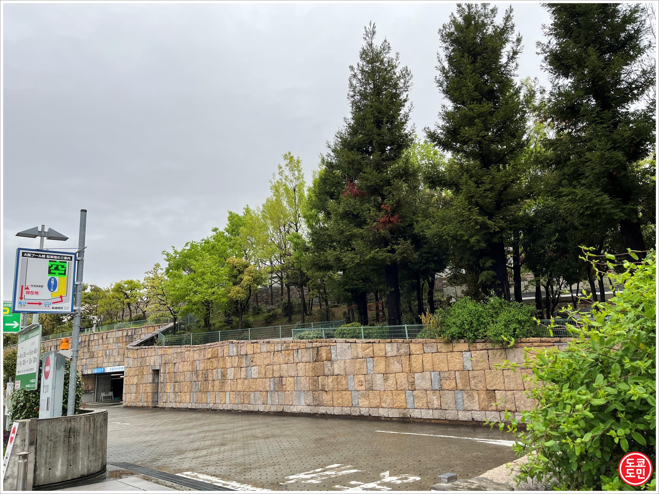"마루젠 인덱스 아리나 오사카(丸善インテックアリーナ大阪)" 위에는 나무들이 많이 심어져있고, 실제로 올라갈 수 있는 산책로도 만들어져 있어서 올라갈 수 있습니다.