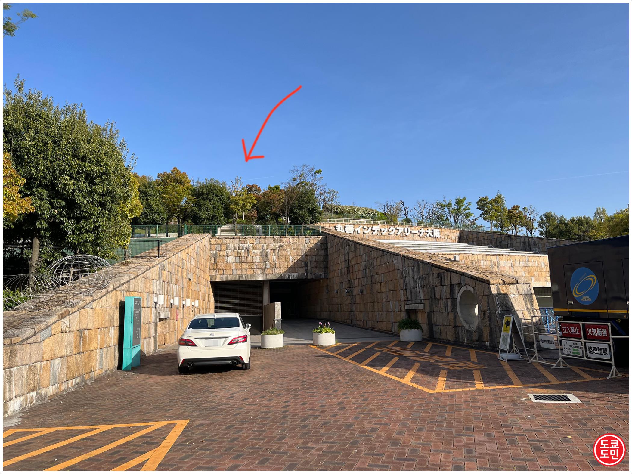 즉, 이 공원의 지하에 엄청 큰 콘서트장, 경기장인 "마루젠 인덱스 아리나 오사카(丸善インテックアリーナ大阪)"이 있습니다.