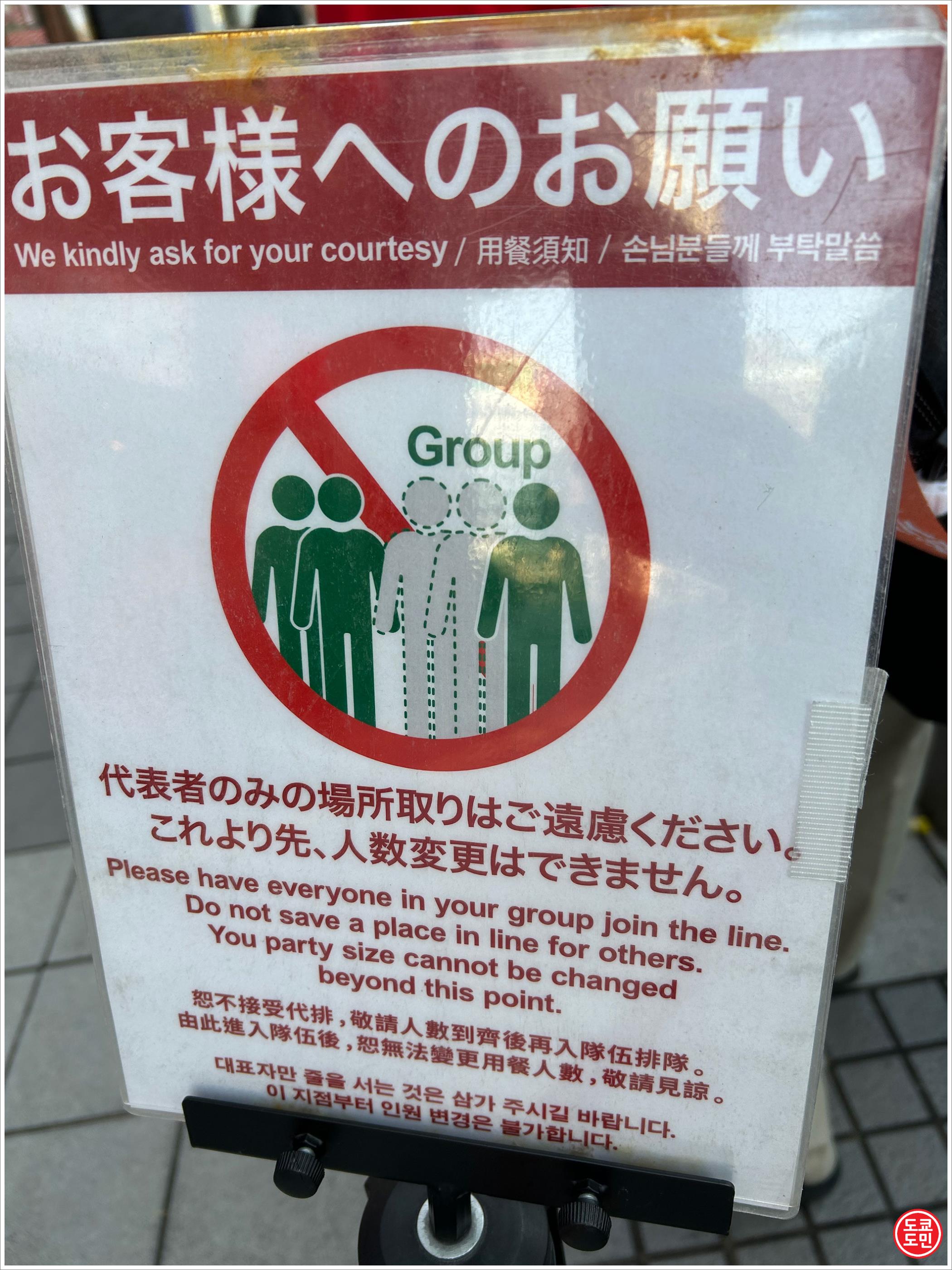 가게앞에 줄을 서서 기다릴때에는 그룹 전원이 줄서서 기다려야 합니다.